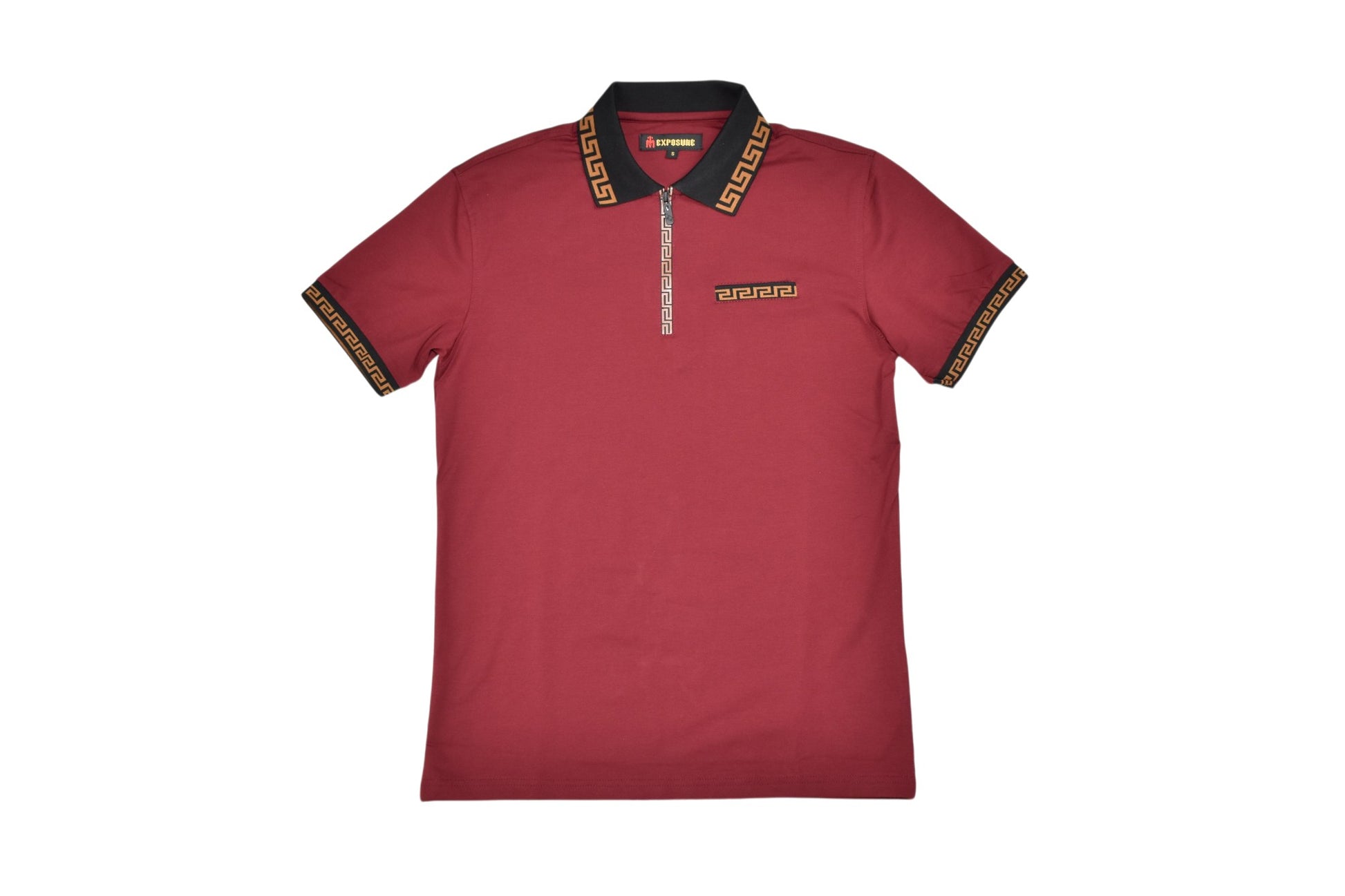 TM Exposure Greek Key Zip Polo Shirt — Burgundy | Men's Short Sleeve